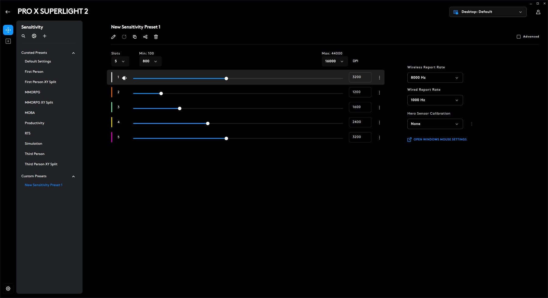 G Hub also offers a feature called “HERO Sensor Calibration,” which allows you to translate your DPI settings from a previous mouse to the Superlight 2. This is a useful tool for those migrating from another mouse, ensuring a consistent feel. I tried it with the Logitech MX Anywhere, and the settings translated just fine.