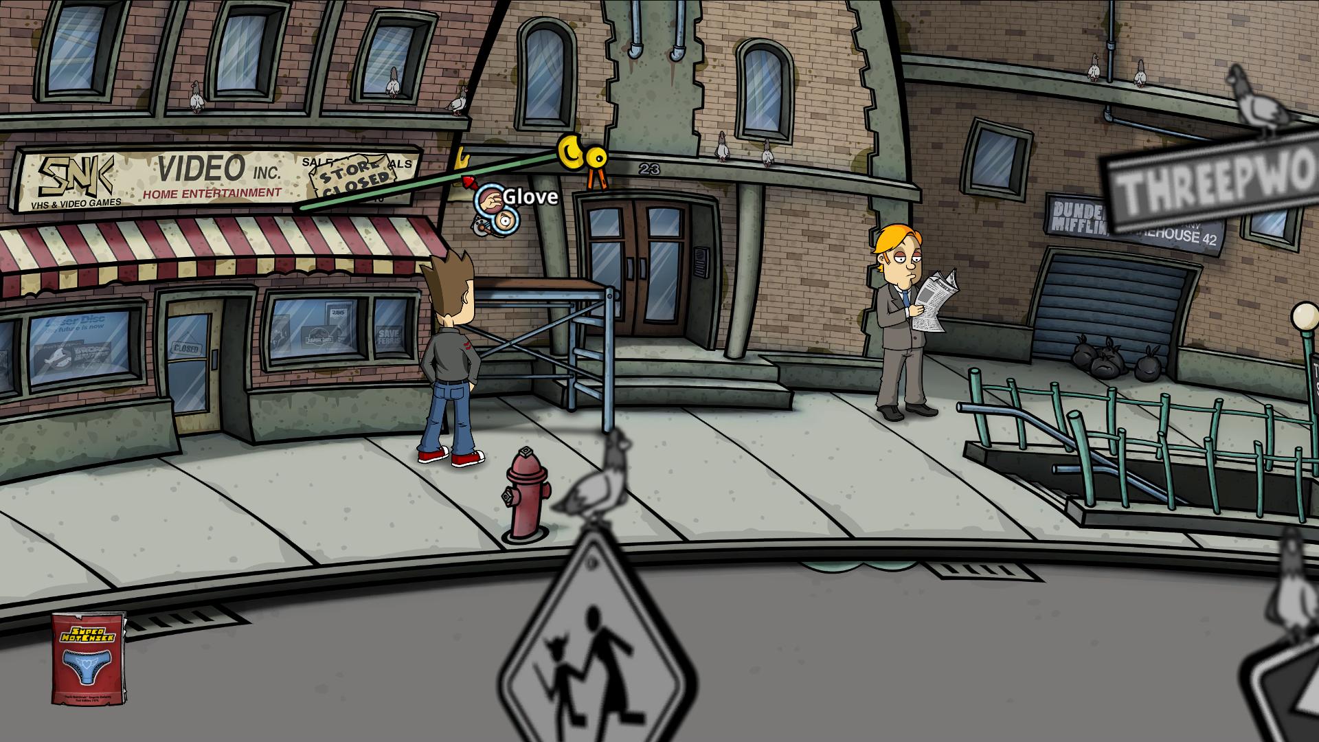 Most of the gameplay involves tricks to find a ring you sold off, unaware of its powers and finding a cure for the time loop you are stuck in. This involves escaping rooms, stealing supplies, bartering items at a pawn shop, breaking into apartments and rescheduling a sci-fi convention to name a few; all while trying not to get fired and/or get anyone killed. Most of these scenarios will have you solve some puzzles involving finding keys, combining items to get the appropriate tools to unlock paths and fixing broken items or creating distractions. This is where the isdues with the game start as the logic of these puzzles is nearly impossible to decipher. They do not follow any common sense and do not give off enough gameplay context to even be relevant. For example, You have to figure out that in order to distract a shopkeeper you have to create a cannon of the clock using steam and the gas tank beside it; all besides the said shopkeeper. The games tells you to use logic, but after half an hour of helplessly clicking on all items in the open world map, you go to the hints and a rather bizarre solution is presented. Soon I realised that the game is only beatable (at least in the first play through) using the hints menu which is very conveniently placed along with the inventory screen. The biggest problem with the puzzles is that there is no kind of context to even nudge you in the right direction. Most games would tell you that, for example, you can distract the guard using item x which is nearby, here Randal tells you the item is old and junk if you observe it. This guide system is just a gated walkthrough which does not offer a hint based on where you are stuck, but rather unlocks a line by line walkthrough as you click the hint button. This is a terrible hint system, however it strangely seems fitting for the game as it goes with the bad puzzles system. It seems the solutions had to be humourous rather than logical and does fit the cartoony theme of the game.