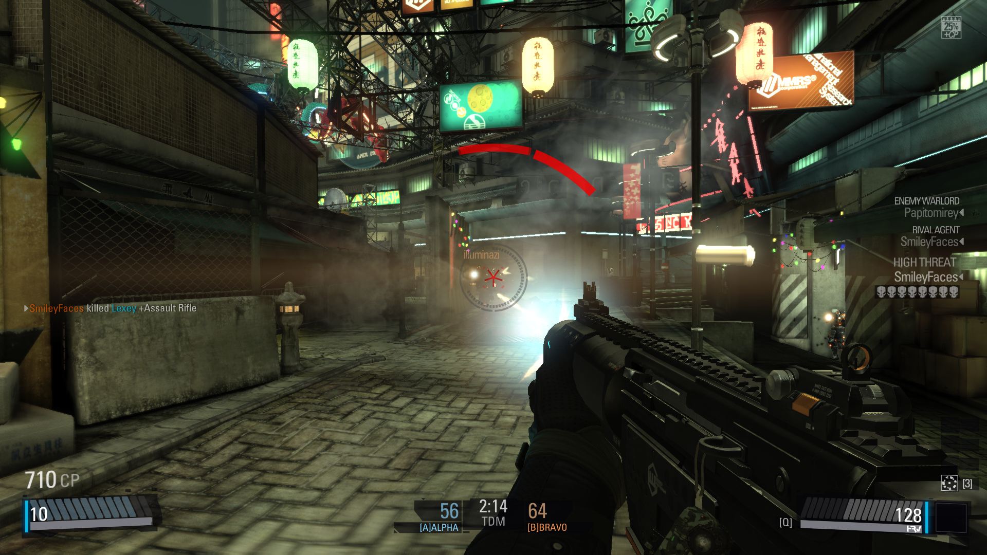 The story of the game is set in the near future where a virus has turned the masses into zombies and there are cooperation’s that compete for resources and Intel. The games graphic really bring the story to life, it not only looks great with a solid frame-rate it is also runs on slightly older systems. It has a beautifully aesthetic and artistically there is a lot of varying maps with environmental effects like sun flares, rain. These effects are map locked so a particular map may at dusk noon while other at night. The contrast of indoor whites and outdoor grey’s is really pleasing. The environments ranges from markets filled with neon signs to train stations, high rising skyscrapers and industrial facilities. They look and fell the part. They are a nicely spaced so that you are never too far from the action yet felling like a large open space. Technically, the game has been out for slightly over and year and constant patches has ensured stability and performance. A special mention has to go to the options menu which offers a lot of tweaking to the UI and other settings like scope and toggling scope and HRV etc. The futuristic UI is somewhat crowded and should have been simplified.